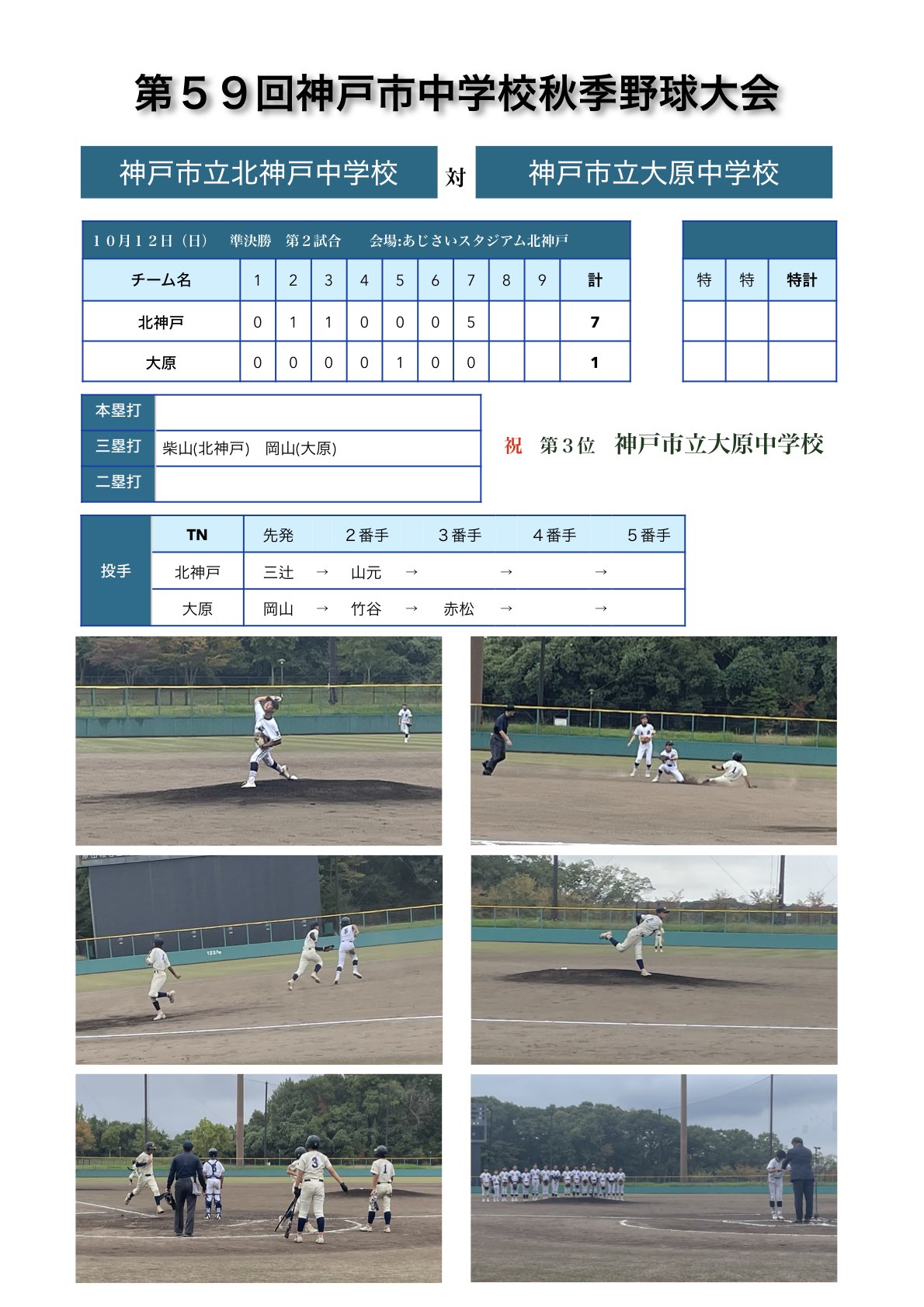 長坂中学校、大原中学校、あじさいスタジアム北神戸でおこなわれ