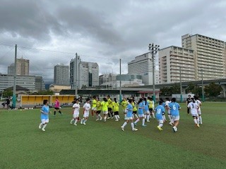 10月も目前となり、朝夕はかなり過ごしやすくなりましたが、本日も30度に迫る暑さとなりました。21名の参加がありました。昨日、甲南大学にて行われた、KONANフットサル大会に参加した生徒も多く、連日の意欲的な参加にスタッフ一同とてもうれしく感じます。
