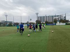 昨日の晴天が嘘のような、朝から雨の空模様でした。雨脚によっては中止も考えましたが、人工芝ピッチのコンディションは問題ないため雨天決行しました。それでも12名の参加生徒があり、雨の中、西区の西の果てから六甲アイランドまで参加する意欲の高い選手もいました。本日より、新規参加の生徒も加わり、基本技能を中心にトレーニングを行いました。濡れた芝でボールが滑り、コントロールにてこずる場面もありましたが、楽しく活動を終えました。次回は、来週の11/16(日)に神戸市サッカー協会が主催する、神戸女子サッカー交流会に参加予定です。