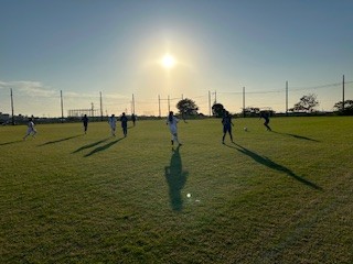 本日も朝から気温が上がる猛暑の中、18名生徒が参加して活動しました。活動も6回目となり、サッカーコート全面を使うことを意識したトレーニングを行いました。当然、パスのスピードを上げることやポジションの理解も必要でミニゲームとは違ったレベルが要求されます。厳しい暑さの中での全面ゲームは、攻撃や守備が目まぐるしく切り替わり、かなりしんどい内容ではありましたが、選手たちは最後まで頑張っていました。