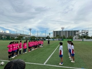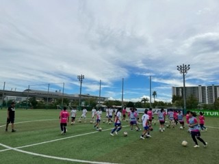 本日9/2(土)は、薄曇りで暑さも少し和らいだ絶好のコンディションのもと、兵庫県中体連女子サッカーアカデミーのトレーニングに、神戸市中学校女子活動から12名の選手が参加してくれました。合同でパスとボールコントロールのトレーニングをした後、フルピッチでのゲームを行いました。普段、女子同士の試合経験が少ない選手たちは、生き生きとプレーしていました。このような機会を与えてくださった、兵庫県中体連女子サッカーアカデミーの選手、スタッフの皆様、ありがとうございました。