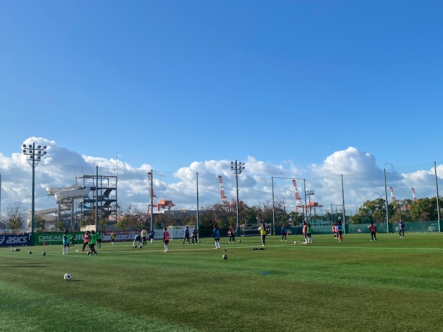 本日は18名の参加があり、晴天の下、西宮市の中学校女子サッカーチームとの交流を行いました。ウォーミングアップの後、神戸と西宮の混合チームで8人制ゲームを楽しみ、最後は、フルピッチで神戸対西宮の試合を行いました。クラブチームで活躍している中学生主体の西宮は、プレーの強度も高く、圧倒されるシーンも多かったですが、そこで刺激を受けて上達につなげてほしいと思います。次回は22日(日)に同時刻、同会場で練習会を実施します。