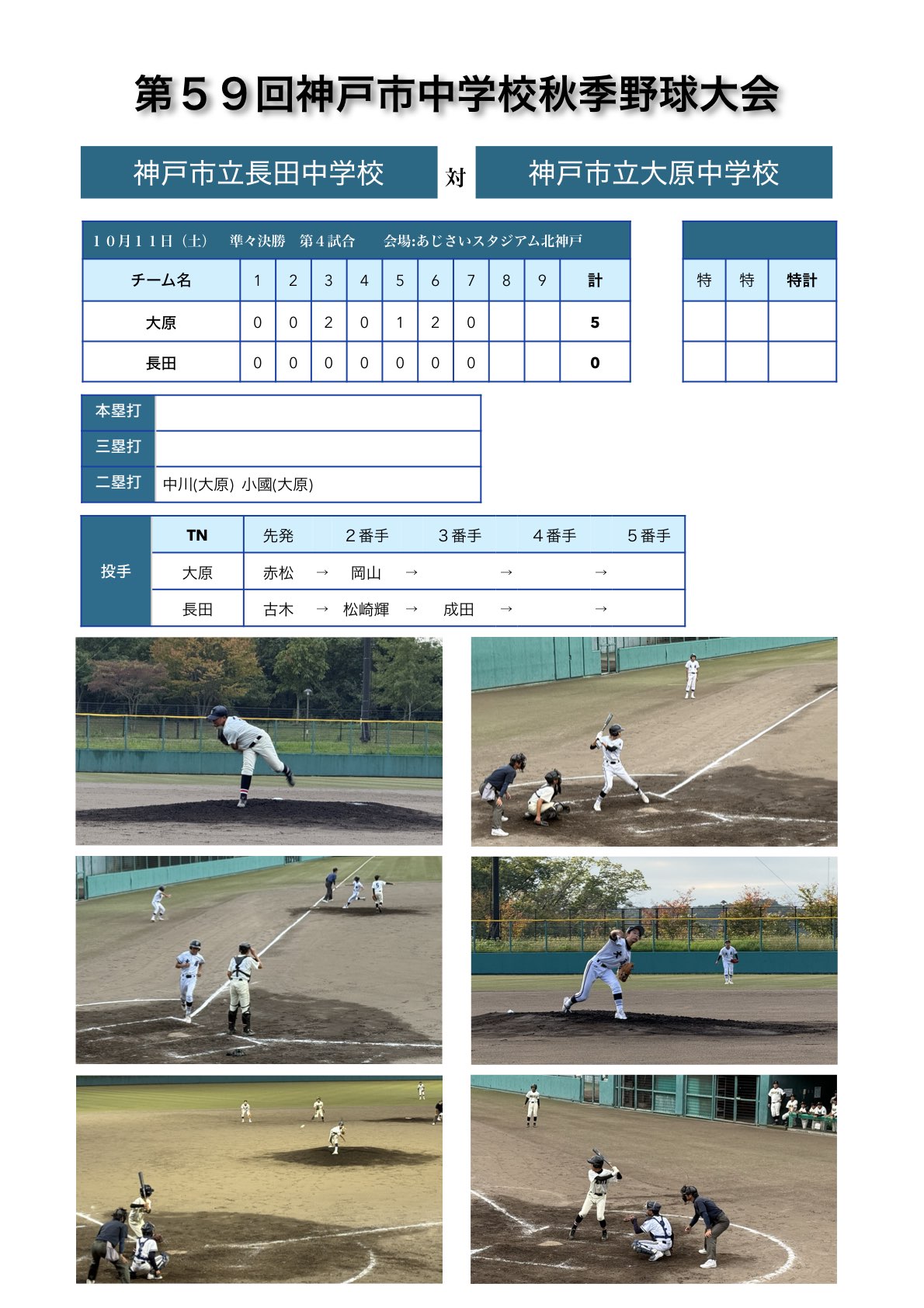 長坂中学校、大原中学校、あじさいスタジアム北神戸でおこなわれ