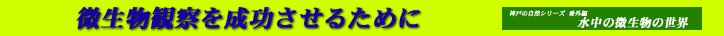 低倍率から高倍率に対物レンズを変える検鏡作業をくり返して最終的には最高倍率でアメーバ(ホシガタアメーバやナメクジアメーバなど)を観察することを目標とします。