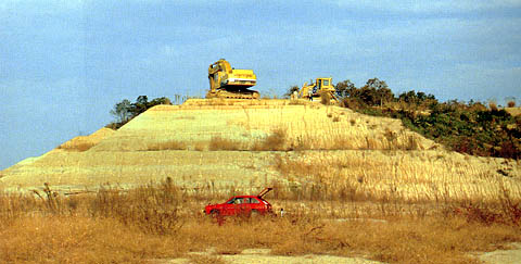 次は、その下位の茶褐色に風化した1m程の粘土層をとりのぞく。ショベルカーとブルドーザーのコンビネーションはみごとと言う他はない。この深さまではまず絶対に大丈夫である。骨が出てくることはない。それでもショベルが地層を1回けずるたびに何か出てこないかと目をこらす。