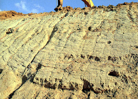 化石の含有層までパワーショベルで地層を取り除くことにした