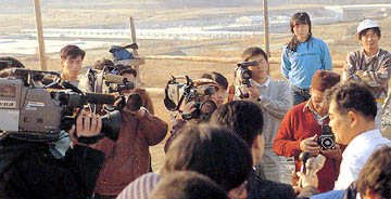 報道陣でにぎわう発掘現場