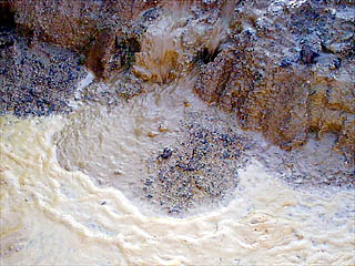 - 海に水がたまってくる。水は泥水になって、にごっている。