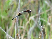 | リスアカネは秋に空中から卵をまきちらします。それも水のないところに...。春になったら水が増えることを知っているのですね。体をふるようにして卵をまくので、空を打っているように見えるので、連結打空産卵(れんけつだくうさんらん)といいます。 |