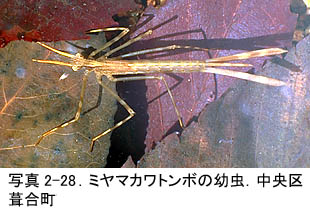 | 写真2-27.ミヤマカワトンボ.中央区葺合町.1990.5.30. メスの静止. |