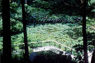あじさい池:摩耶山頂の野外観察の池です。わき水を利用してつくられています。冷たくきれいで、大型のヤンマがよく卵を産んでいます。